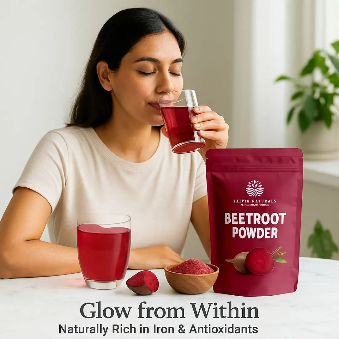 Experience the natural way to boost blood flow, elevate energy levels, and achieve radiant skin with Jaivik Naturals Beetroot Powder — your daily dose of clean, plant-based power.
